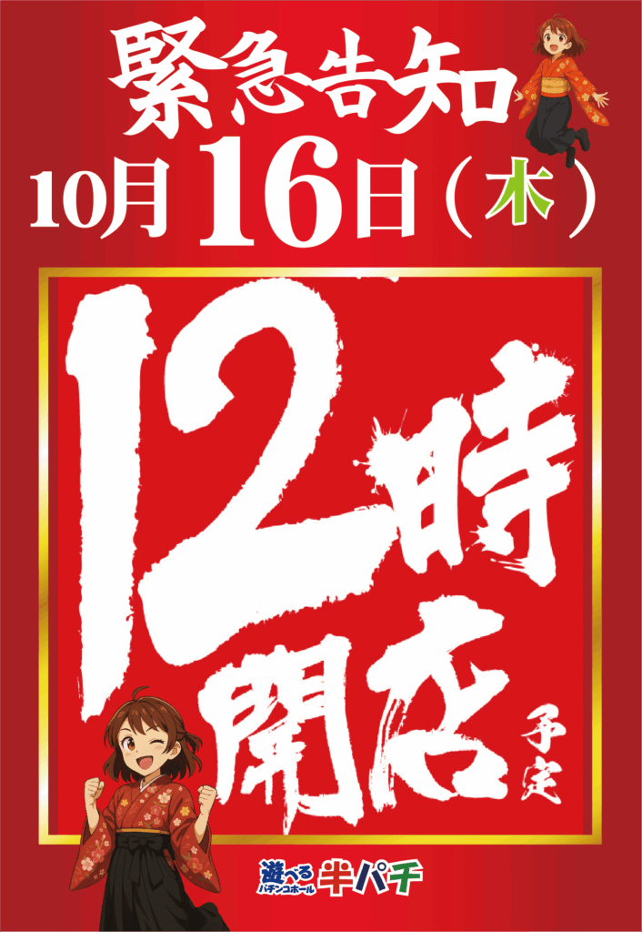 マルギン半パチ 12時開店のお知らせ