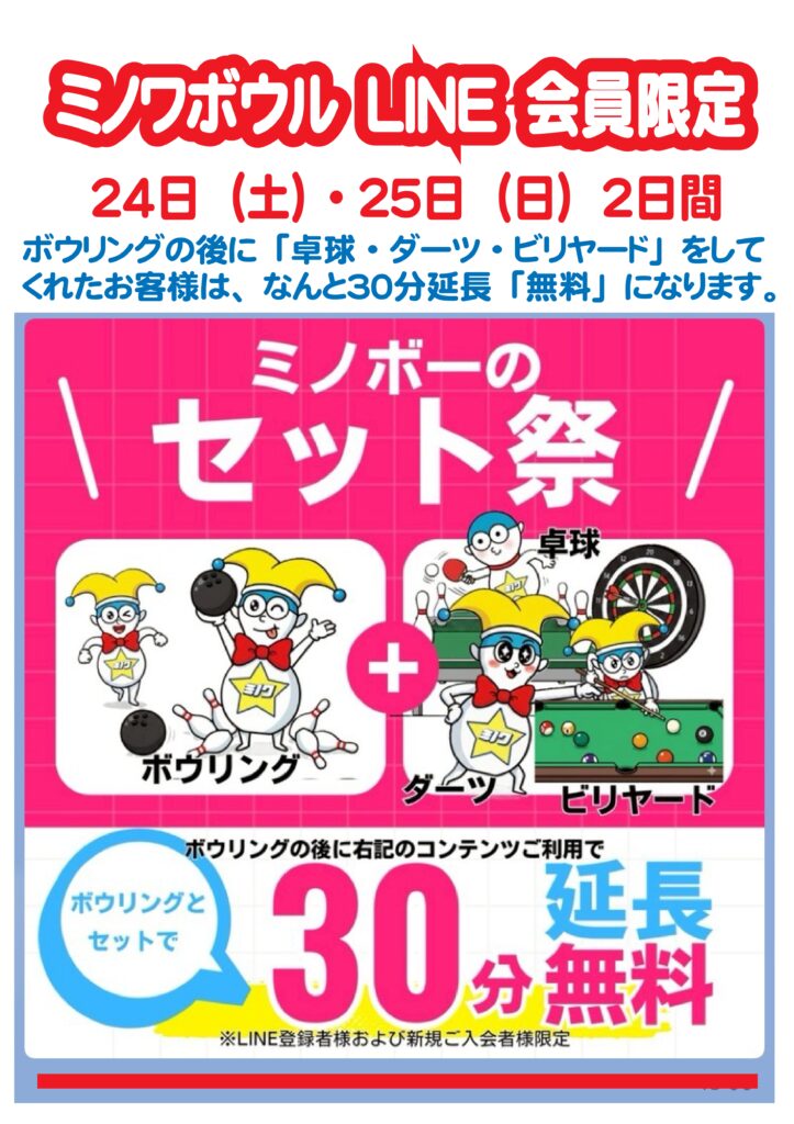 大好評の恒例ミノボー縁日や、スコアでビンゴ、グルグルバスケットなど、期間限定企画が満載。